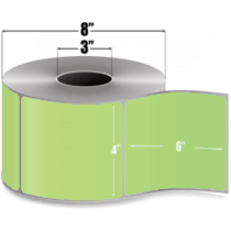Part Details: 4" x 6" Green Paper Label - Thermal Transfer - Permanent Adhesive - Perforated - Wound Out - Flood Coated Fluorescent Green (PMS 802U) - 3" Core - 8" Outer Diameter for Industrial Printers. 1000 Labels per Roll - Priced per Roll. Also Available as a Case (Part# ATTFL-4-6-1000-GR).