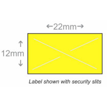 Part Details: Price Marking Label, 22 mm x 12 mm pantone yellow label with permanent adhesive, security slits, 11,000 labels/sleeve, 20 sleeves/case. For use in the X-Mark TXM 22-6, 22-7, 22-8, 22DATER, XLPRO 22B, 22C, 22D, 22V price marking guns. Single case with MOQ of 1 case. Twenty ink rollers included per case. Ink roller item # IRXMB.