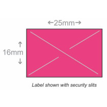 Part Details: Price Marking Label, 25 mm x 16 mm fluorescent pink label with permanent adhesive, security slits, 8,000 labels/sleeve, 20 sleeves per case. For use in the X-Mark TXM 25-107, 25-1010, 25-10A10, 25-10A10A, 25-5P, XLPRO 25EC, 25EE, 25EEA, 25EEAA, 265P price marking guns. Single case with MOQ of 1 case. Twenty ink rollers included per case. Ink roller item # IRXMB.
