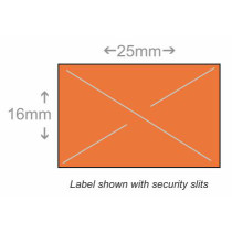 Part Details: Price Marking Label, 25 mm x 16 mm fluorescent red label with permanent adhesive, security slits, 8,000 labels/sleeve, 20 sleeves per case. For use in the X-Mark TXM 25-107, 25-1010, 25-10A10, 25-10A10A, 25-5P, XLPRO 25EC, 25EE, 25EEA, 25EEAA, 265P price marking guns. Single case with MOQ of 1 case. Twenty ink rollers included per case. Ink roller item # IRXMB.