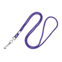 Part Details: 1/8 ROUND PURPLE SILVER METALLIC LANYARD WITH NICKEL-PLATED STEEL CRIMP AND SWIVEL-HOOK. Quantity: 100.