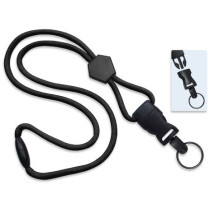 Part Details: Lanyard Standard, Black, 1/4 (6mm), Polypropylene Round Material, with Diamond Slider, New Dtach Split Ring. Sold in quantities of 100. Priced per 100 units.