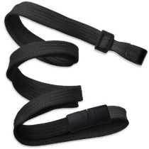Part Details: Lanyard Standard, Black, 3/8 (10mm), Flat Braided, Woven Lanyard, Unprinted, Polyester Material, with Black Wide Plastic Hook, with Break-Away. Sold in quantities of 100. Priced per 100 units.