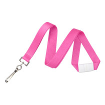 Part Details: 5/8 FLAT NEON PINK (806C) LANYARD WITH WHITE BREAKAWAY AND SEWN NICKEL-PLATED STEEL SWIVEL-HOOK. Quantity: 100.