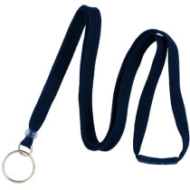 Part Details: Navy Blue 3/8 Lanyard with Breakaway and Ring. Flat Braid Polyester Material with a 48 Thread Count for a Softer More Comfortable Fit. Comes with a Color Matching Breakaway and a Clear Plastic Bead Finishing Option. Quantity of 100.