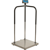 Part Details: MS140-300, 520 mm x 520 mm / 20.5" x 20.5", 660lb capacity medical scale with handrail and wheel kit. Operates on four AAA batteries or US adapter (both included). Some assembly required.