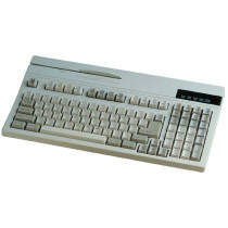 The K2724 POS Keyboard features a dual track Magnetic Stripe Reader and built-in bar code scanner port providing a space-saving one-piece solution suitable for point of sale banking and other commerce applications. It provides basic customization through 21 relegendable keys. Rugged construction and a spill resistant design guarantee an extended life cycle.
